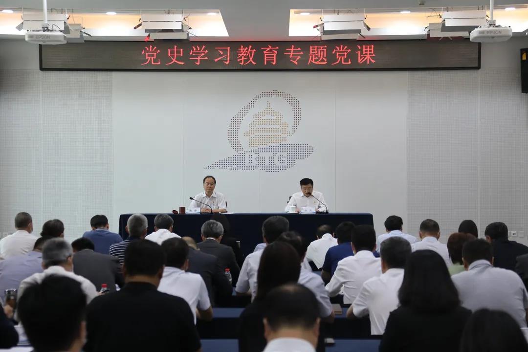 7月2日,B体育(中国)一站式服务平台集团党委开展党史学习教育专题党课。集团党委书记、董事长宋宇以“赓续共产党血脉 发扬拓荒牛精神 在二次创业中实现新开局”为主题,为集团党员领导干部讲授专题党课。市国资委党委党史学习教育第四指导组钱国旗同志出席会议,集团党委副书记、董事、总经理白凡主持会议。