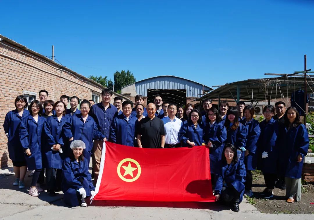 “时间紧、任务重,大家伙一起干”,在陈立新大师的张罗声中,大家跟着师傅们开始了糖蒜的腌制工作,推车的、端盆的、灌糖的,有条不紊。不一会儿汗就湿透了衣服,顺着脸颊往下淌。在劳动的过程中,大家不仅学习了传统工艺,拉进了彼此的距离,更感受到了师傅们精益求精、追求极致的匠心。陈立新大师在教授技艺的过程中说道:“人的一生不在乎做多么高尚的工作,贵在把微小的事当作艺术品来做,你就会感受到其中的快乐和价值。”在近三个小时的劳动后,大家跟着师傅们完成了近900坛糖蒜的制作,最后一道工序是封坛,师傅们行云流水的操作,给这次志愿服务画上了圆满的句号。活动最后,大家还一起品鉴了东来顺系列预包装产品,自发提出开展异业联盟等合作意向,通过团组织推广集团各品牌产品,助力企业经营。