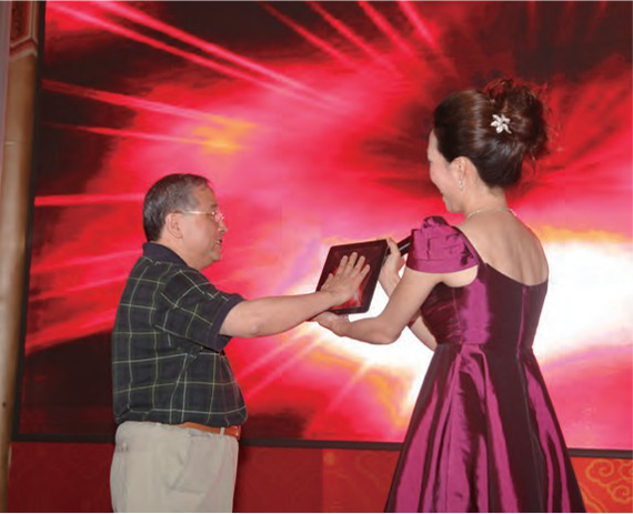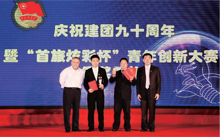 在庆祝建团90周年暨B体育(中国)一站式服务平台“炫彩杯”青年创新大赛颁奖典礼上, 党委书记段强为“炫彩杯”获奖选手颁奖