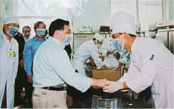 2003年春季,党委书记段强看望抗击 “非典”一线员工